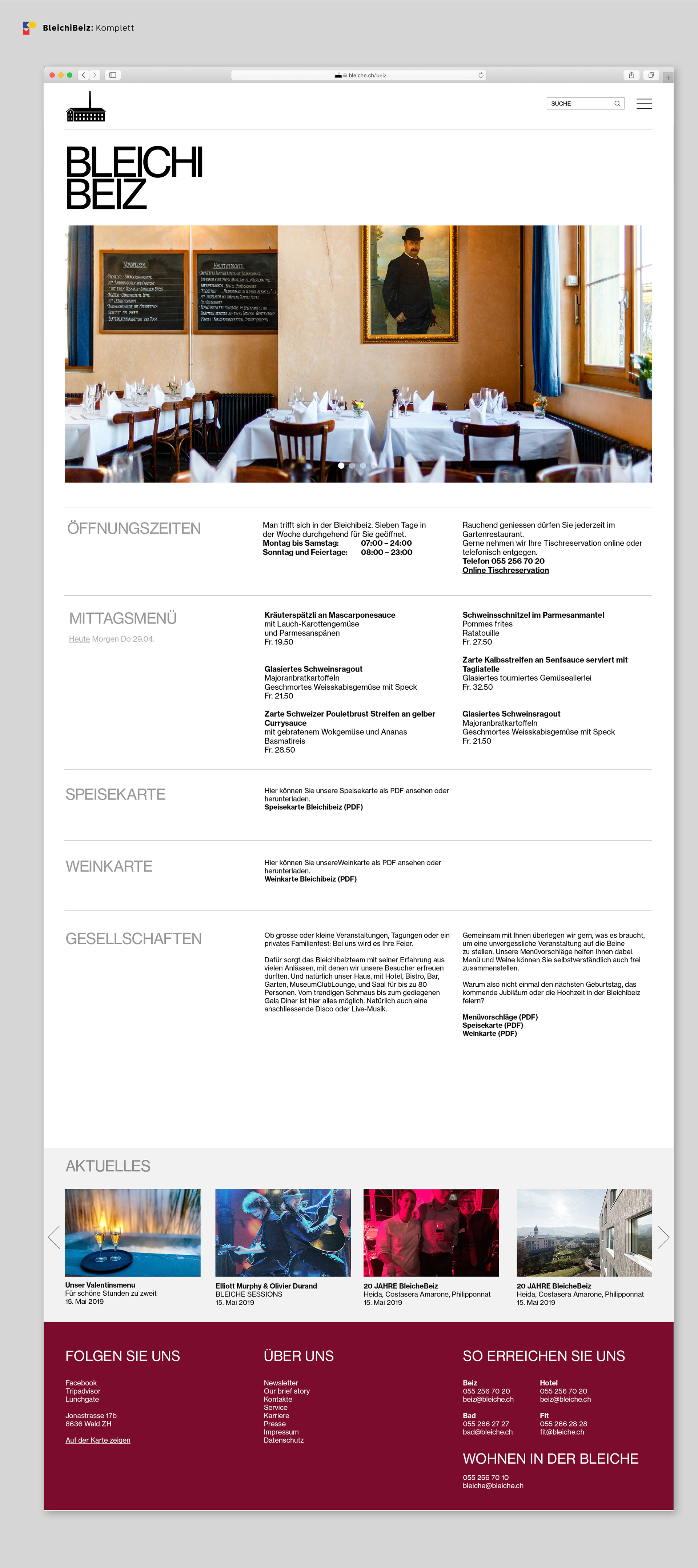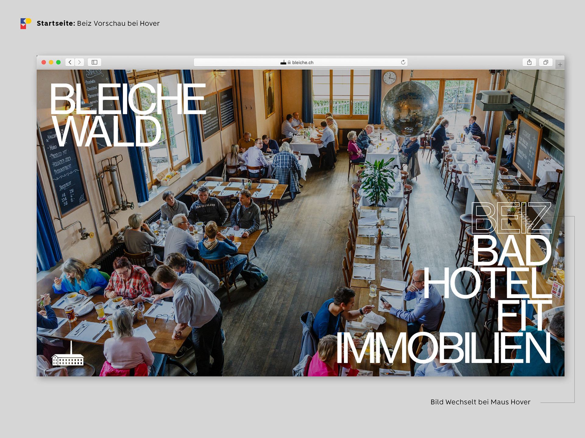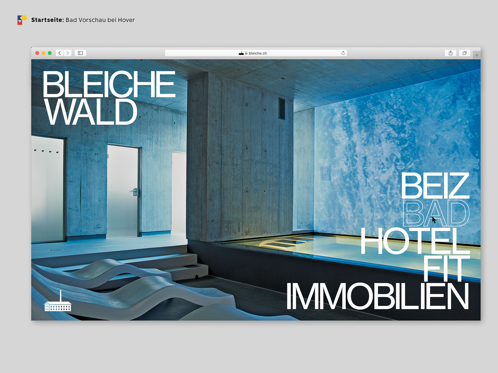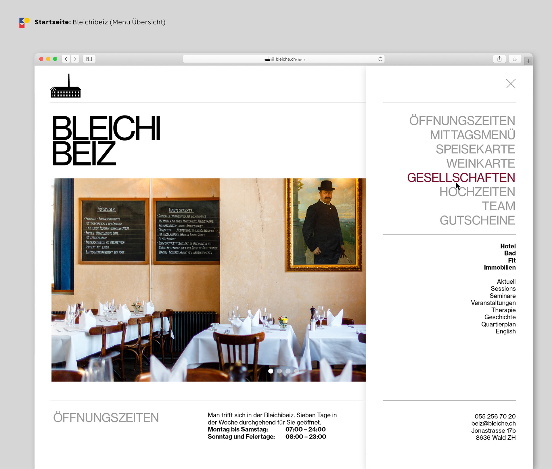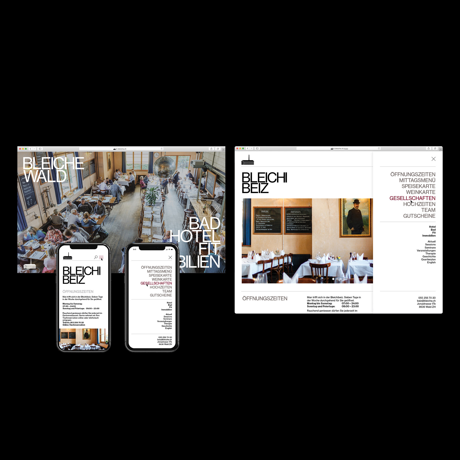 Graphic Design work for the Corporate Identity and Website Design for the Restaurant, Hotel, Spa, Fitness Studio and Property Business in Wald, Zurich. www.bleiche.ch