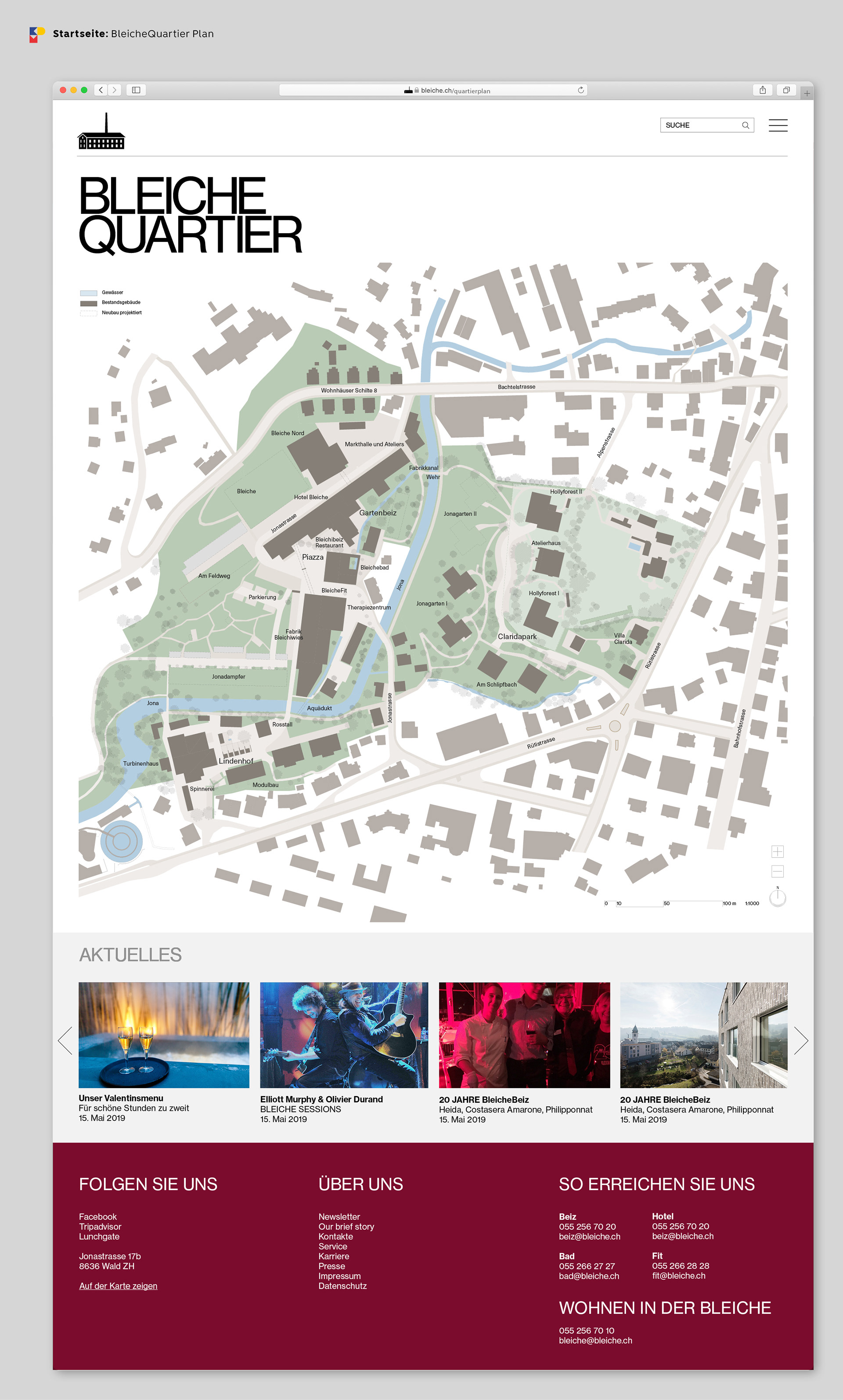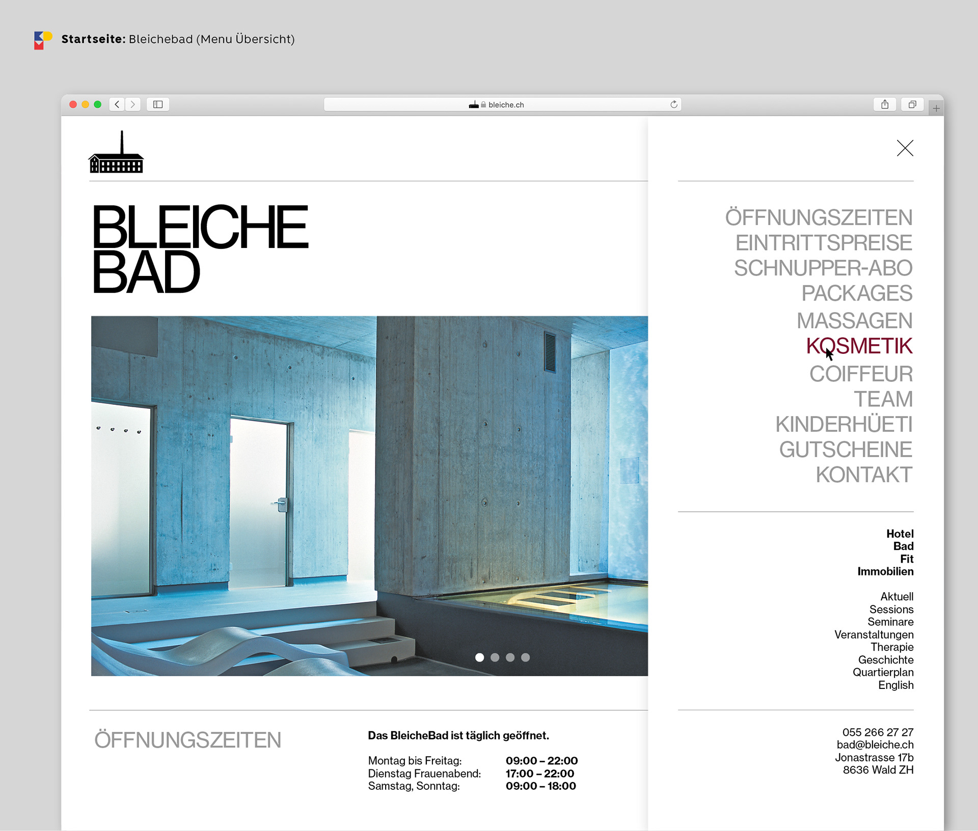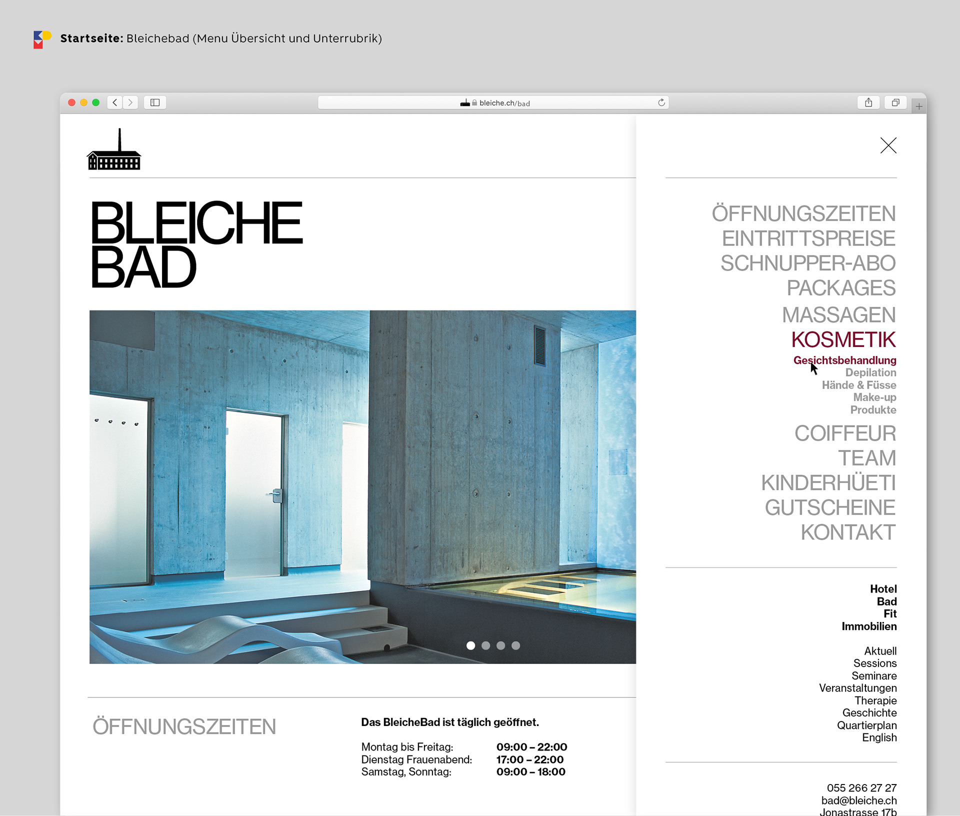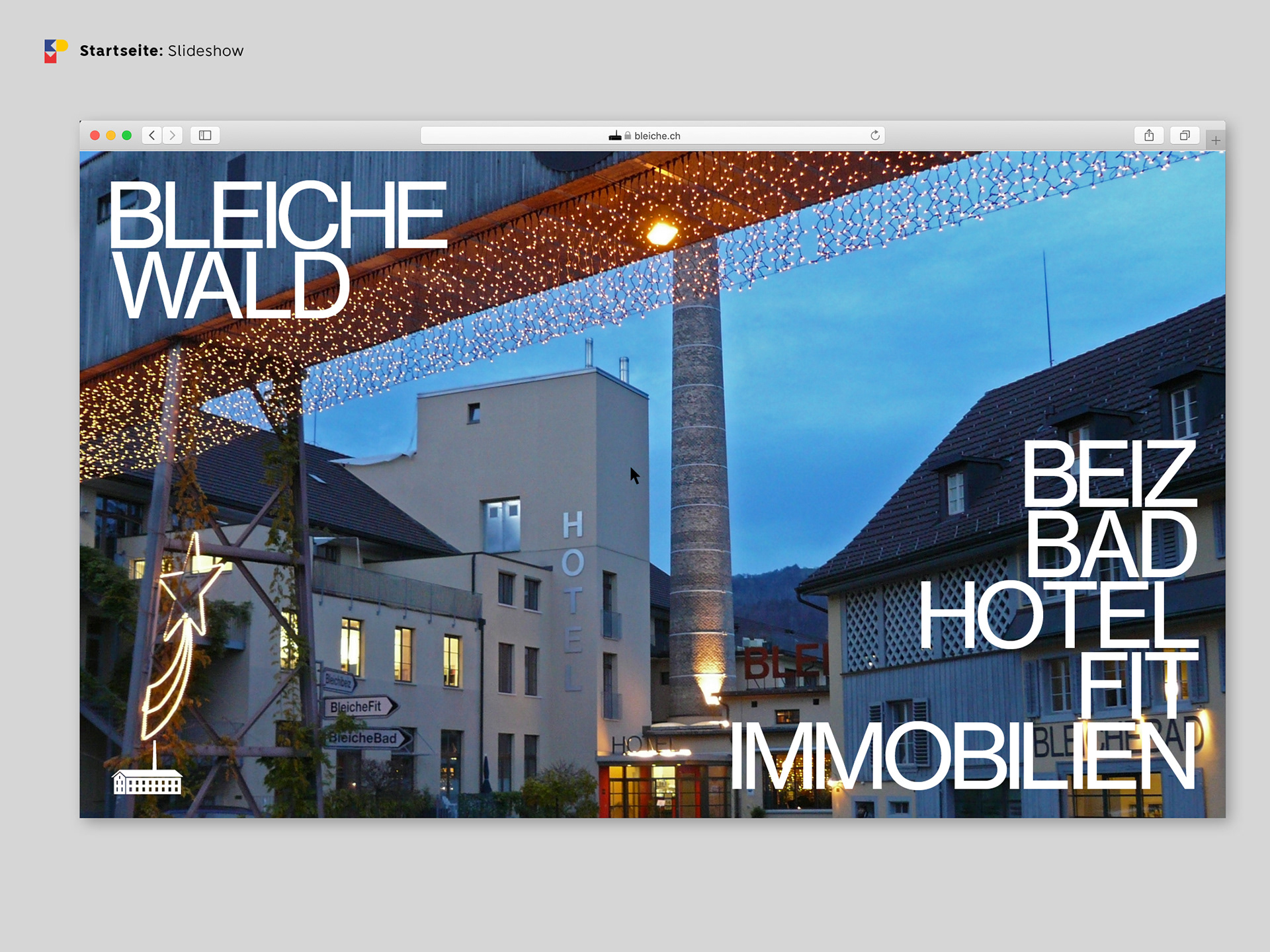 Graphic Design work for the Corporate Identity and Website Design for the Restaurant, Hotel, Spa, Fitness Studio and Property Business in Wald, Zurich. www.bleiche.ch
