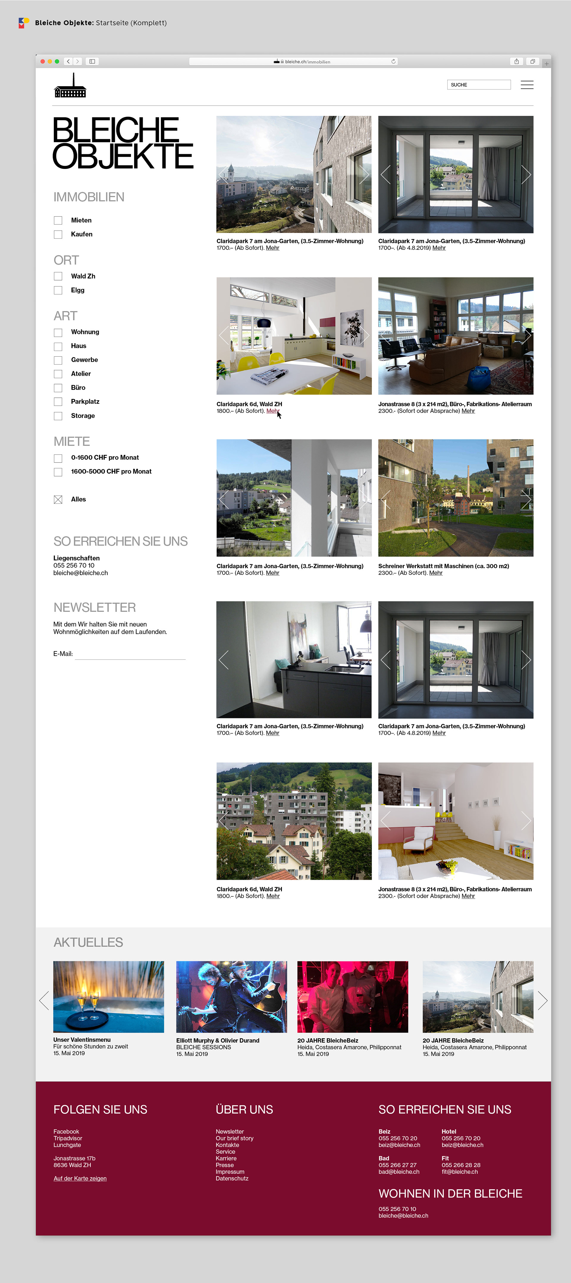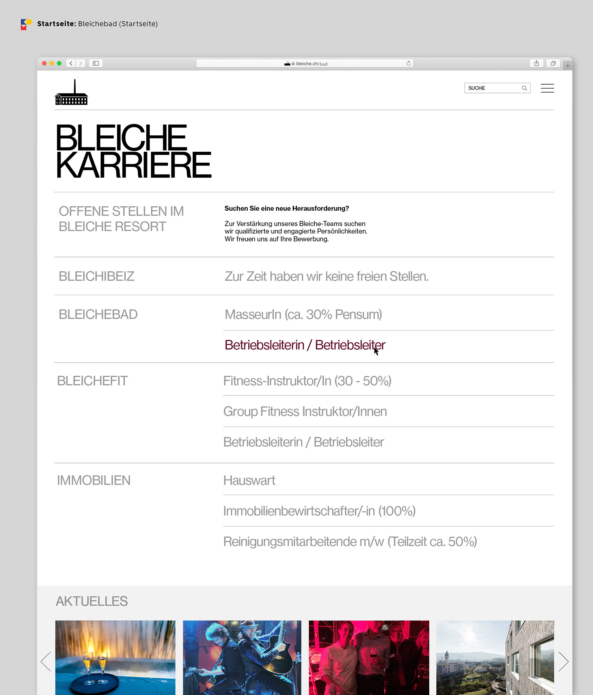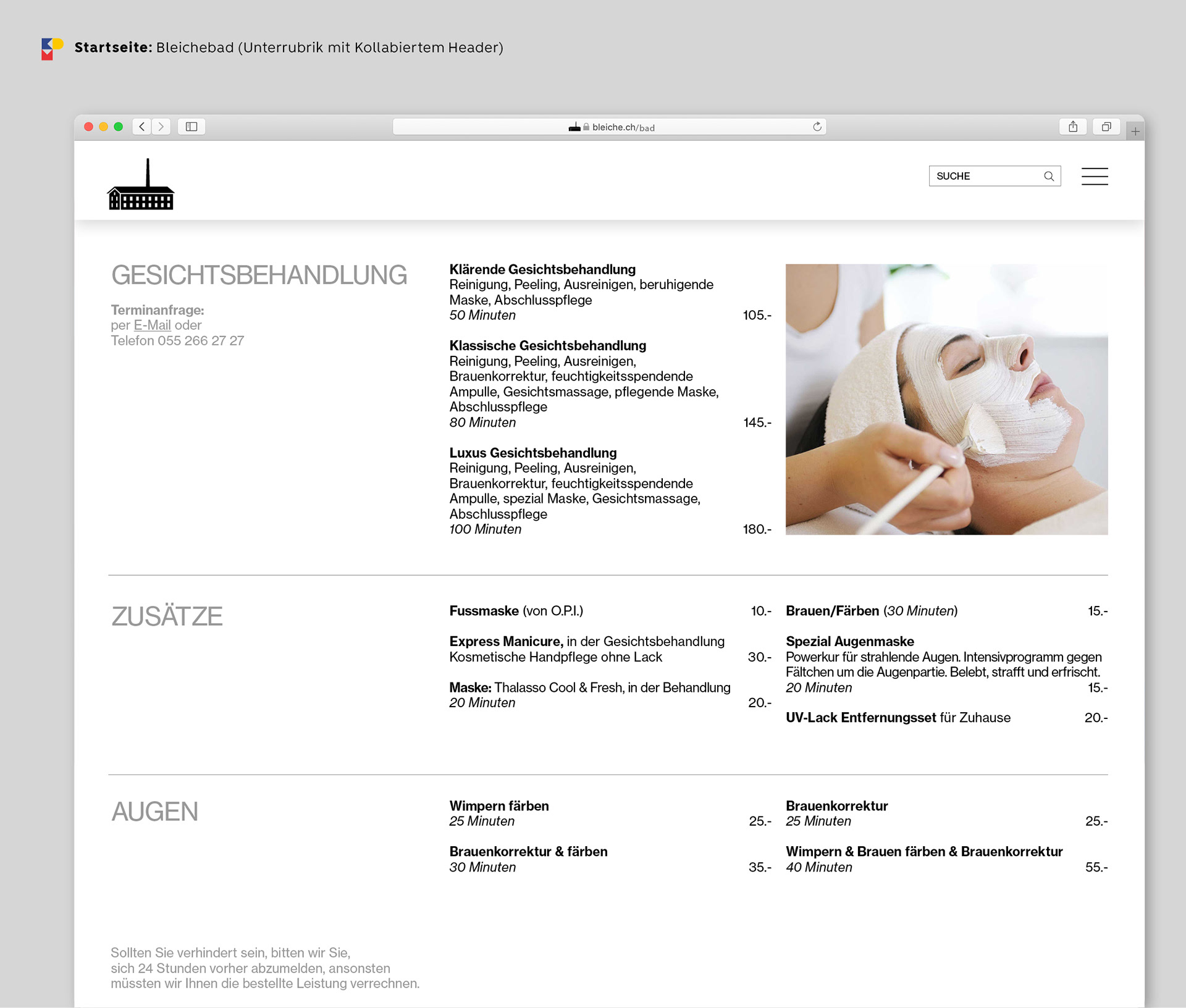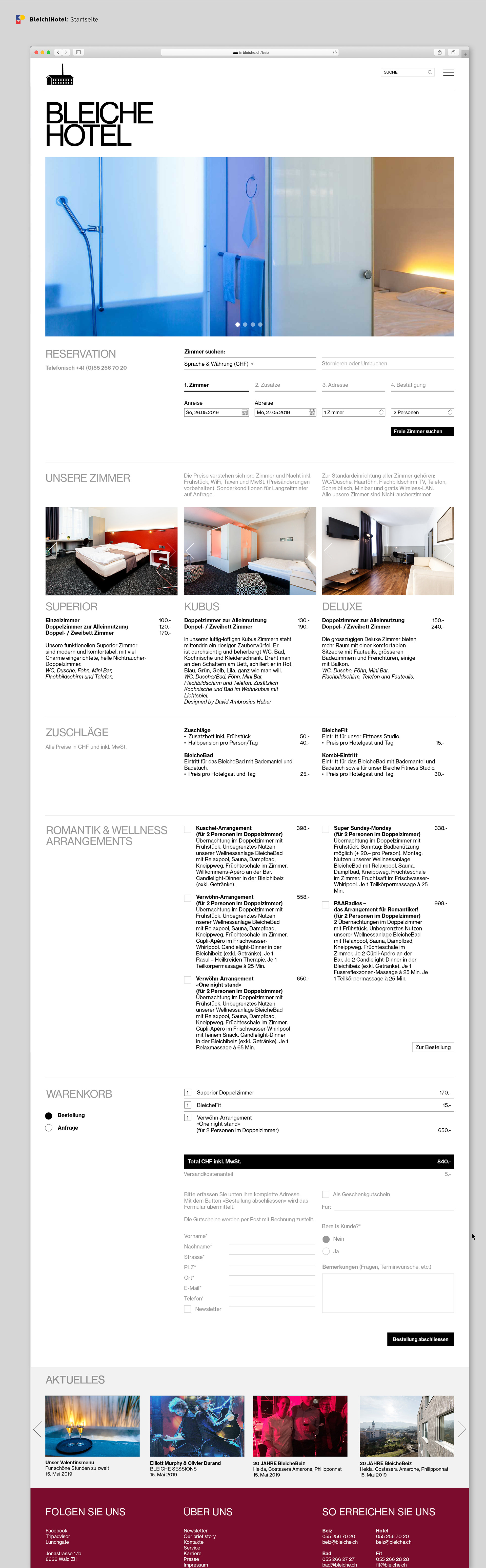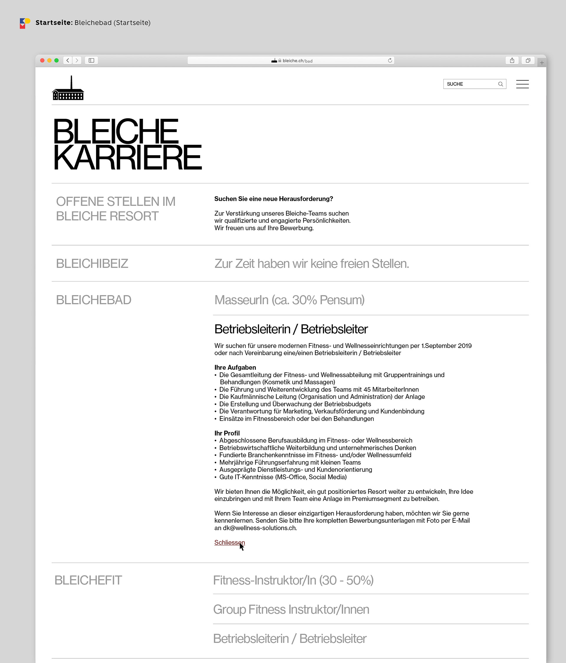 Graphic Design work for the Corporate Identity and Website Design for the Restaurant, Hotel, Spa, Fitness Studio and Property Business in Wald, Zurich. www.bleiche.ch