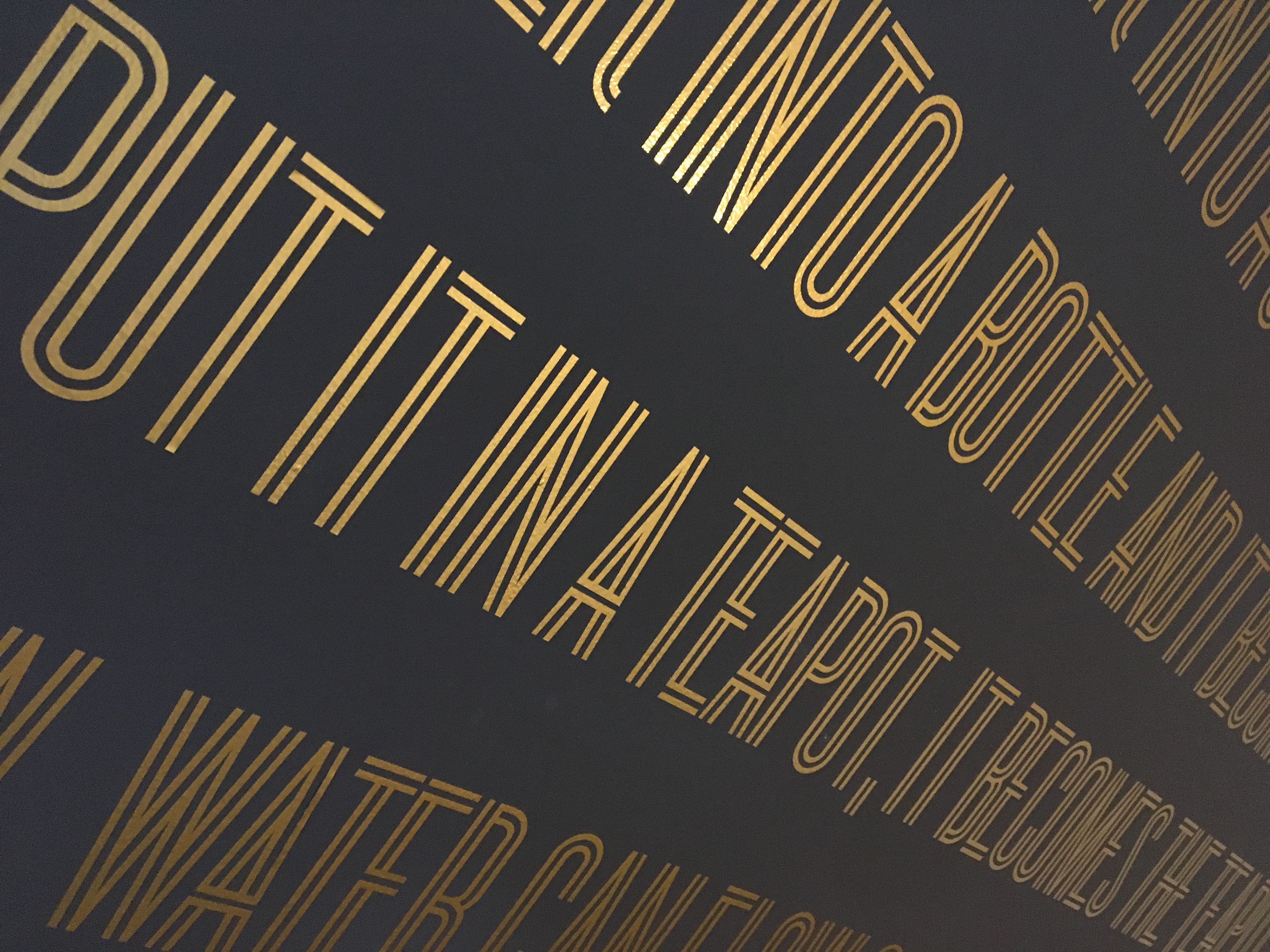 Vinyl Lettering "Be Water My Friend" quote by Bruce Lee for the Yogastudio wall.